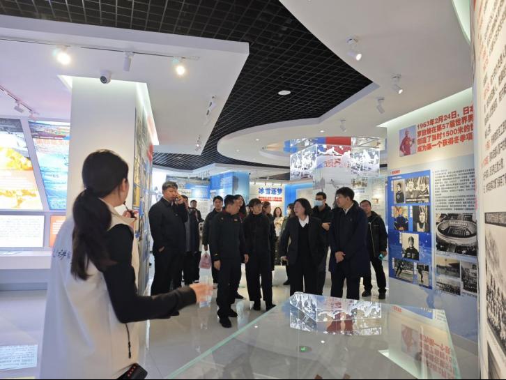 座谈会结束后,在冬季奥林匹克学院院长穆亮和李兴洋教授的陪同下,共同参观了中国冰雪运动文史馆(校史馆)深入了解了我省冰雪运动发展的辉煌历程、人才培养的卓越成就以及冰雪产业发展的广阔前景。