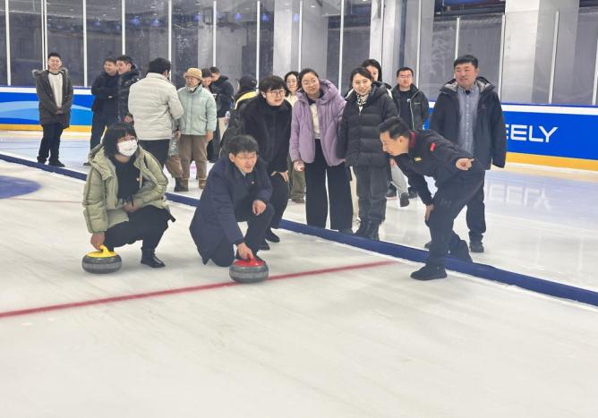 参观结束后,在冬季奥林匹克学院副院长黄宇等引导下,科技厅同志体验冰壶、冰球运动,增进交流并切身感受冰雪运动魅力与科技应用潜力。