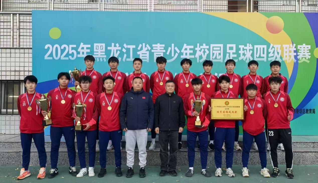 2025年黑龙江省青少年校园足球四级联赛(大学生组)于10月1日在东北农业大学举行。比赛由黑龙江省教育厅主办,有来自省内的28支代表队、560名学生参赛。我校男子足球队参加了大学生甲组比赛,经过单循环赛制以全胜的战绩取得第一名的优异成绩,同时获得精神文明奖。此外,教练员丁冰荣获赛会优秀教练员;刚凯荣获优秀运动员称号;郑锦炆荣获最佳射手称号;高明辉荣获最佳守门员称号。
