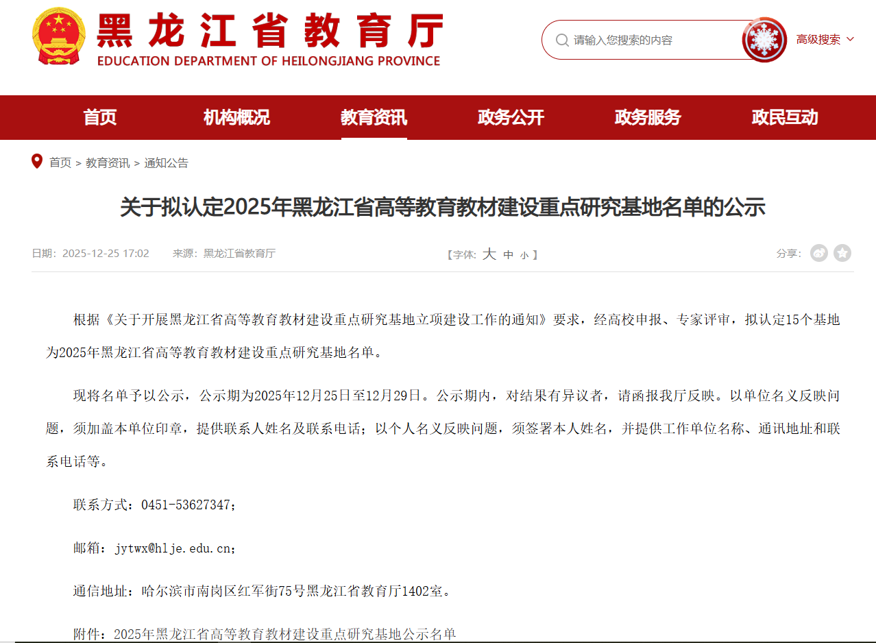 近日,黑龙江省教育厅公示了2025年高等教育教材建设重点研究基地拟认定名单。我校牵头申报的“黑龙江省学校冰雪体育发展联盟教材研发中心”成功获批,入选省级重点研究基地。