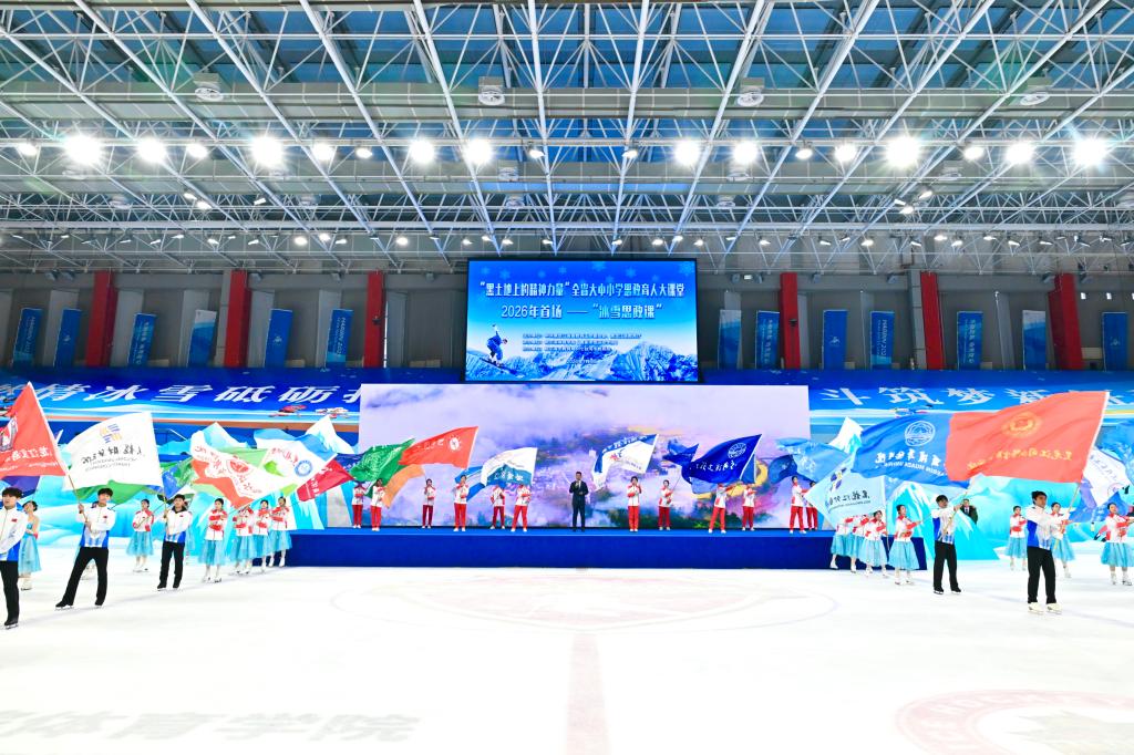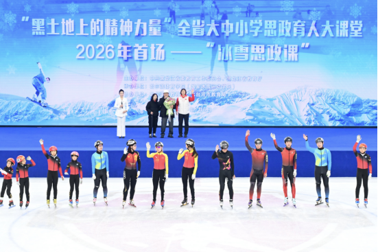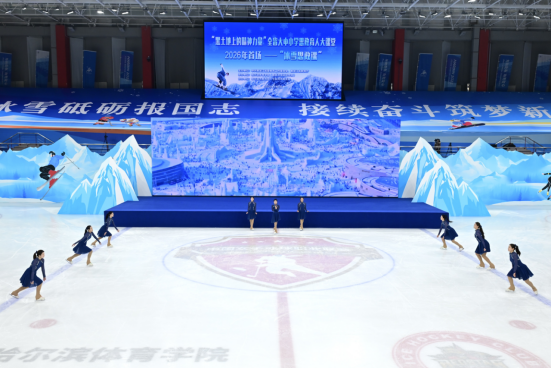 1月6日下午,由省委教育工委、省教育厅主办,哈尔滨体育学院(国家冰雪运动学院)承办的“黑土地上的精神力量”全省大中小学思政育人大课堂2026年首场“冰雪思政课”在我校大学生滑冰馆成功举办。活动以“燃情冰雪砥砺报国志 接续奋斗筑梦新征程”为主题,通过哈体院5位主讲教师深情讲述龙江冰雪健儿的奋斗史诗,体育艺术学院、冬季奥林匹克学院学生极具冰雪特色的沉浸式展演,为现场1000余名师生代表及线上观看的龙江青年学子呈现了一堂有温度、有深度、有力量的冰雪思政金课。省委教育工委常务副书记、省教育厅厅长许振宇出席活动,省教育厅分管负责同志、职能部门负责同志,在哈高校分管负责同志、相关教育局负责同志、大中小学师生代表现场参加活动。活动通过线上平台同步直播,全省青少年学生线上观看。