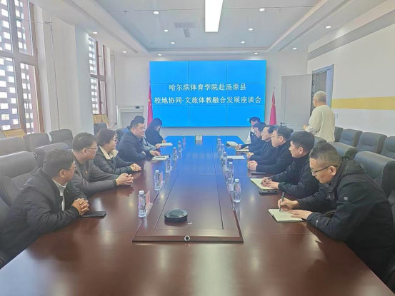 在汤原县,王春雷、贾妮燕一行与县文旅局、教育局、体育服务中心主要负责同志举行座谈,围绕校地协同发展深入交流。双方就共建大学生实习实训基地、推动民族传统体育进校园、体育文化资源共享、人才联合培养等事项精准对接,明确合作方向与推进节点,以高校学科优势赋能地方文体教育事业提质升级。