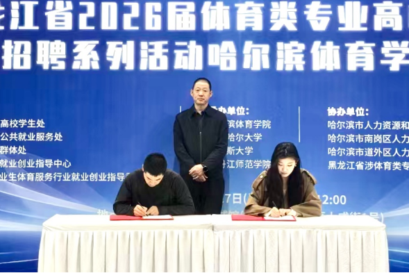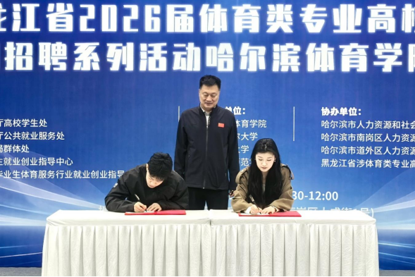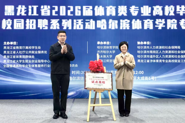 启动仪式上,哈尔滨体育学院党委书记、校长姜玉洪,副校长齐景嘉、纪委书记李柃燕、副校长曹连众,黑龙江省体育局群体处处长田野、黑龙江省教育厅高校学生处一级调研员崔志伟、黑龙江省人社厅就业创业处副处长赵玉栋,黑龙江省社会体育指导员协会会长张丽及哈尔滨市(区)人社部门等相关同志参加,肯定了哈尔滨体育学院作为黑龙江省涉体育类专业高校就业工作协作体的成果,表达了持续深化政校行企区协作意愿;学生与企业现场签约、校行企合作签约仪式、黑龙江省首家社会体育指导员试点高校揭牌、颁发突出贡献校友证书、为年度最佳合作企业授牌,展现用人单位引才用才担当与新时代青年逐梦职场的昂扬风貌。