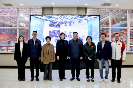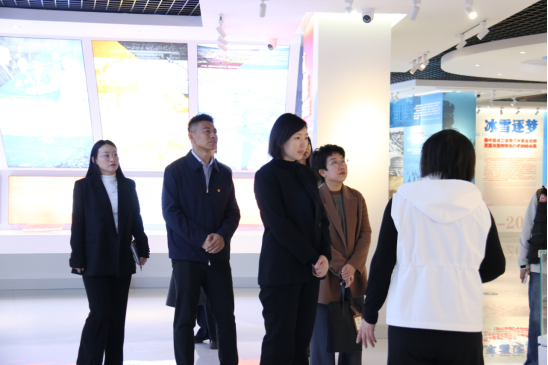 闫欢一行首先前往大学生滑冰馆,听取学校服务国省冰雪赛事情况,并对国家冰雪运动学院办公区及国家体育总局冰雪运动基础理论与训练方法重点实验室进行参观。