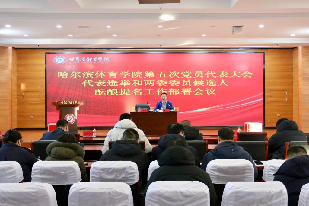 按照《中国共产党哈尔滨体育学院第五次党员代表大会筹备工作方案》和工作要求,12月4日,在崇德楼三楼学术报告厅召开学校第五次党代会代表选举和两委委员候选人酝酿提名工作部署会议,党委委员、组织部长康凯就选举工作相关细节作出具体解释并提出要求,全校各基层党委、直属党支部书记、副书记和相关工作人员参加会议。