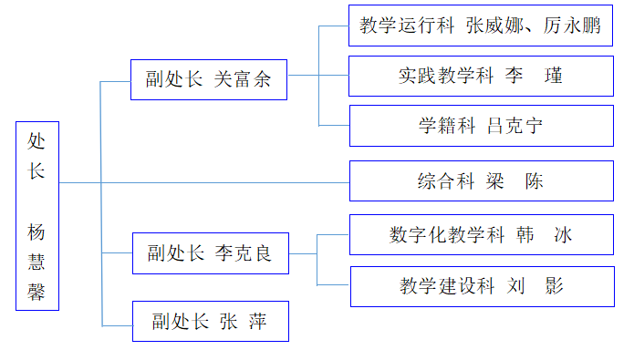 (五)数字化教学科职责:1.负责制定学校本科教育数字化教学相关文件,推进教育教学信息化建设工作。2.负责教务管理系统、在线教学网站及保密室的信息化等建设管理工作。3.负责试卷库、标准化考场、口语考场等软硬件信息化建设管理工作。4.负责组织智慧教室采购、建设与管理工作。5.负责学校教室多媒体设备及网络设备的巡查、报修工作。6.完成部门交办的其它工作。
