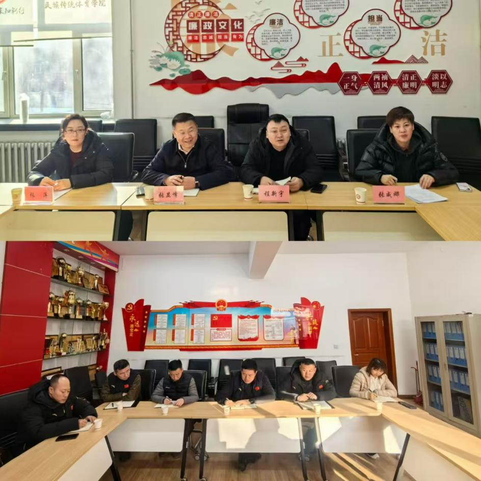 教学检查汇报会在民族传统体育学院会议室召开。会上,学院副院长张忠楼首先就本学期教学工作整体推进情况做详细汇报,包括课程建设、实践教学、师资培养等核心内容。随后,学院党委书记王德新汇报本学期教学相关活动开展情况,重点阐述党建引领教学、学风建设、传统体育文化传承等工作成效。检查组就关键问题进行现场问询与交流指导。