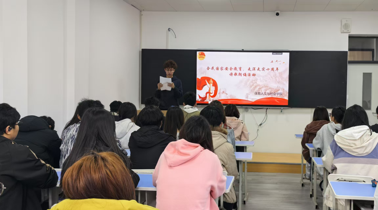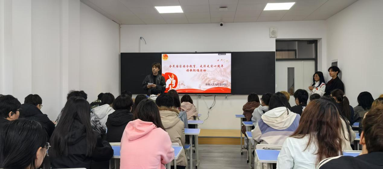 体育人文与社会学院团委通过主题宣讲、诗歌朗诵的形式让同学们更加深刻理解国家安全教育知识。在主讲人辅导员董宜鹏、学生刘哲旭的宣讲中,参会学生们深入了解到国家安全是指国家政权、主权、统一和领土完整、人民福祉、经济社会可持续发展和国家其他重大利益相对处于没有危险和不受内外威胁的状态,以及保障持续安全状态的能力。国家安全的重要性体现在它是国家生存、发展与人民幸福的根本保障,是维护社会稳定、抵御内外威胁的核心基础。
