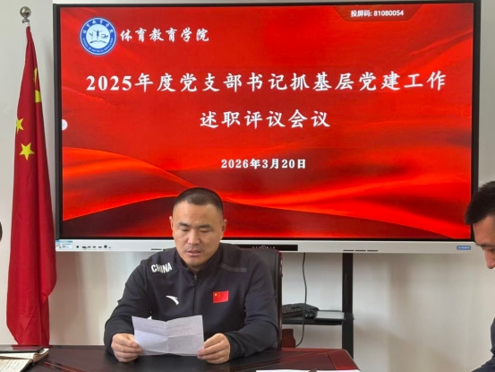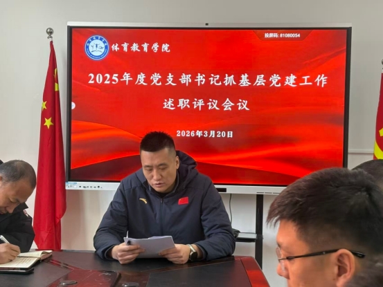为进一步压实党支部书记抓党建主体责任,切实增强党支部政治功能和组织功能,以强化党建引领学院高质量发展。3月20日,体育教育学院召开2025年度党支部书记抓基层党建工作述职评议会议。会议由党委书记王斌主持。