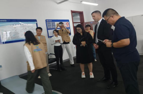 2025年9月24日9时45分,英国利兹贝克特大学国际处处长乔·罗斯蒂特、中国办公室主任妮娜·李、项目协调员丹尼尔·吴在我校外事处孙海丽处长的陪同下到校科研实验室访问交流。体育科学研究院院长汪宇峰、实验室主任秦颖、实验员蒋德生热情接待了英国利兹贝克特大学访问团,实验室全体成员对英国访问团的到访表示热烈欢迎,双方开展了深入的交流并期待未来有更多的合作机会。