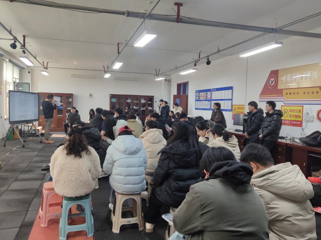 2026年3月17日中午体育科学研究院科学实验研究中心主任秦颖、实验员蒋德生老师,在综合测试与训练室(3907)举办了机能实验室安全培训。本次培训活动重点阐释了实验室仪器设备预约使用(含外借)、上课及召开组会预约流程;实验室的准入规范、申请程序以及消防安全等内容,旨在确保实验室安全运行。