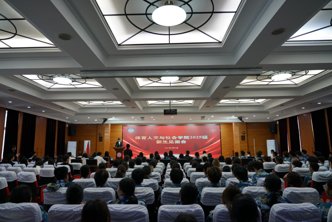 为帮助2025级新生更快融入校园生活,明确成长方向,同时表彰在前期工作中表现突出的同学,发挥榜样示范作用,体育人文与社会学院于9月25日中午12:30在机关楼三楼报告厅举行2025级新生见面会。院长王飞,党总支副书记杨涛,副院长姚小林,组织员于淑华,综合办公室主任王志博,学生工作办公室、团委负责人董宜鹏,以及各教研室主任、副主任出席此次会议,会议由2024、2025级辅导员刘帅主持。
