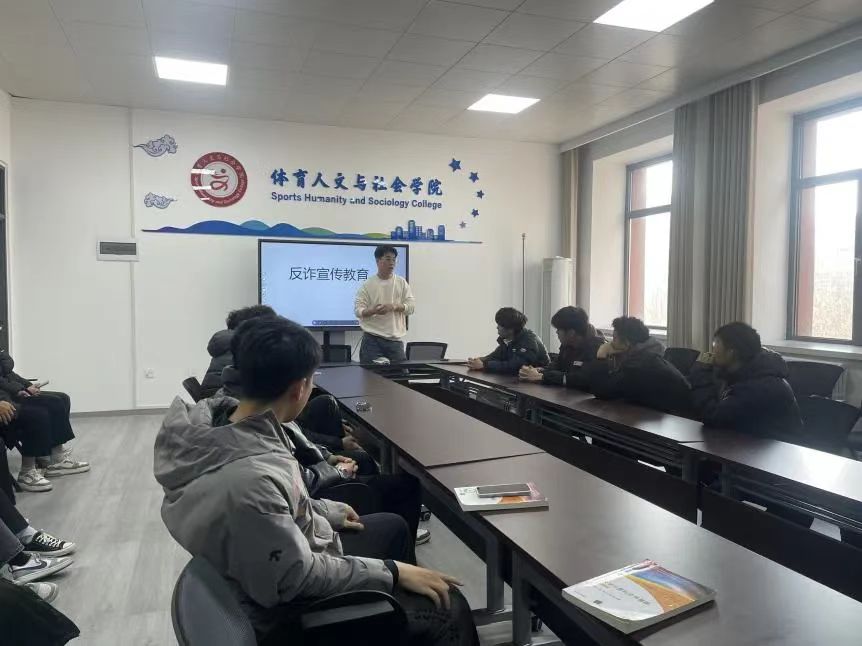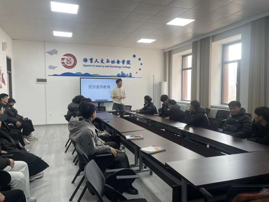 为了筑牢反诈防线,守护青春校园,体育人文与社会学院于11月19日中午11:30在一教四楼会议室开展学生反诈知识强化宣传工作,本次活动由辅导员刘帅主持,2025级全体同学参加。