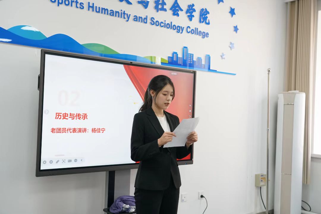 为深入贯彻习近平总书记关于青年工作的重要思想,加强基层团组织建设,进一步铸牢团员青年的责任与使命,体育人文与社会学院于2025年11月4日在一教四楼会议室举行新团员入团仪式。体育人文与社会学院党总支副书记杨涛,辅导员董宜鹏、刘帅共同出席,会议由栾和祎主持,全体新老团员共同见证了这一庄严的时刻。