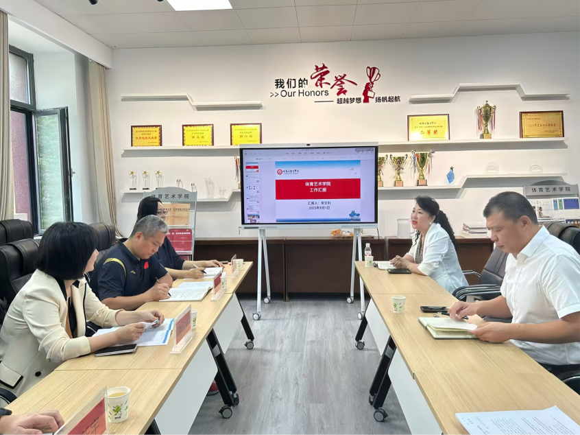 汇报会上,体育艺术学院党总支书记刘义峰首先就学院开学初的整体情况作了基础介绍。随后,院长宋文利教授代表学院作了全面、详实的工作汇报。汇报内容紧紧围绕师资队伍建设、教育教学成果、学院发展规划、特色课程建设、师德师风成效以及党建工作等核心方面,充分展示了学院蓬勃发展的良好态势和新学期各项工作的有序开展。