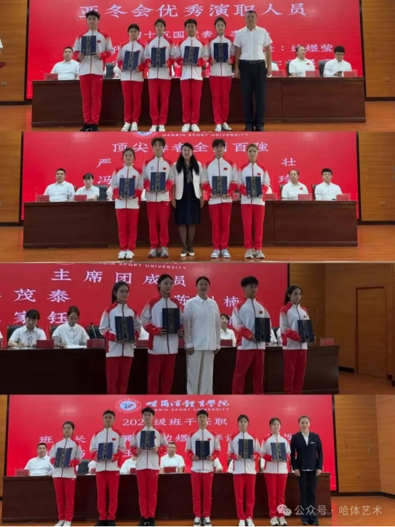 赵云朋宣读了《体育艺术学院2024-2025学年度表彰决定》为优秀班级干部、优秀学生会主席、竞赛类获奖代表及亚冬会优秀演职人员颁发了荣誉证书。受表彰的同学用实际行动诠释了体艺学子的精神风貌,为新生树立了学习榜样,激励着新同学们在未来的校园生活中积极进取、追求卓越。