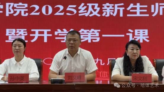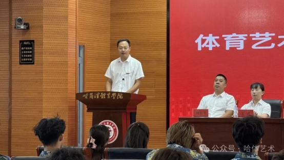 大会最后,体育艺术学院党总支书记刘义峰为2025级新生讲授“开学第一课”。刘义峰书记特别提到,在第41个教师节当天,省委书记许勤亲临哈尔滨体育学院看望慰问师生,这充分体现了省委省政府对学校冰雪体育教育事业的高度重视,也是对我校办学成果给予的充分肯定,以及对全体师生的深切关怀,这为学院的发展注入了强大的精神动力。刘义峰书记寄语2025级新生:一、希望你们记住,要做懂得感恩的人。感恩父母、感恩朋友、感恩老师,你们生逢其时,重任在肩。你们赶上了这个伟大的时代,也将肩负起这个伟大时代赋予你们的伟大使命。努力践行“请党放心,强国有我”的青春誓言。二、希望你们记住,要做一个勤奋的人。秉持“崇德尚勇,求知躬行”的校训精神,爱国爱校、勤学苦练、刻苦钻研、顽强拼搏、追求卓越的校风。你们要在这里丰富知识体系,培养体育精神,出早操、练晚工,练就意志品质;增强自我定力,立大志、明大德、成大才、担大任,努力成为德智体美劳全面发展的社会主义建设者和接班人。三、希望你们记住,要做一个自信的的人。要做“有志气,有骨气,有底气,有理想,敢担当,能吃苦”肯奋斗的青年,我们要常思立身、立德之根本,常怀立学、立行之初心,常悟立志、立业之要义,在属于我们的这样一个昂扬向上的新时代,做一个有追求、有本领、有情有义有血有肉的人,全力以赴,为梦想拼搏,努力成为一名合格的体育强国,健康中国的参与者、贡献者、创造者 !