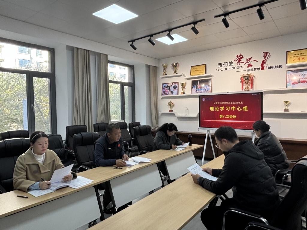2025年10月22日,体育艺术学院党总支组织召开体育艺术学院理论学习中心组第八次学习会,集体学习了《中国共产党思想政治工作条例》、习近平在二十届中共中央政治局第二十二次集体学习时的重要讲话精神、习近平给天津大学和中国农业大学全体师生的回信,并集体观看了谢春涛同志关于《习近平谈治国理政》第五卷辅导讲座视频。会议由学院党总支书记主持,学院领导班子成员、各师生党支部书记和委员参加学习。