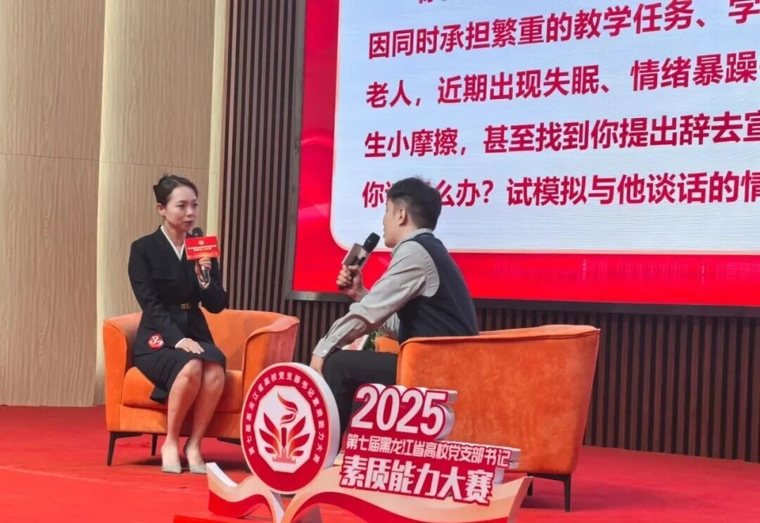 2025年10月28日至30日,由黑龙江省委教育工委主办、哈尔滨理工大学承办的第七届黑龙江省高校党支部书记素质能力大赛成功举办。体育艺术学院教工党支部书记吴迪代表学校参赛荣获“双带头人”教师党支部书记赛道三等奖.
