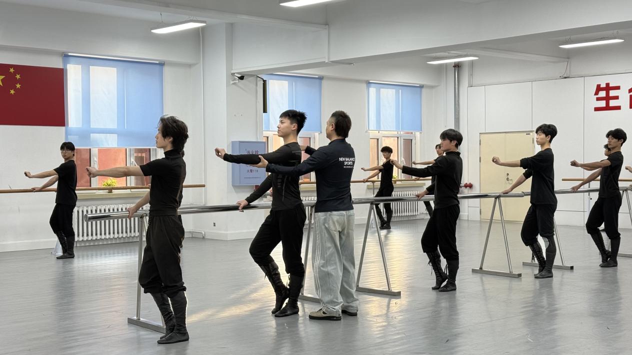 进入第二、三天的把下组合训练,课堂氛围愈发热烈。男女同学打破界限,携手完成连贯舞段,将第一天的基础技巧融入集体协作中。科尔老师不仅带领大家打磨动作衔接的流畅度,更深入解读蒙古族马舞背后的文化基因——他循着游牧民族的历史脉络,讲述摇篮步源于“马背为生命摇篮”的民族记忆,刨蹄步再现战马踏地扬尘的雄姿,勒马式则承载着草原勇士驰骋战场的英雄气概。从摇篮步的轻盈起伏,到刨蹄步的刚劲顿挫,再到勒马式的沉稳坚毅,老师逐一示范标准姿态,让同学们在舞动中读懂每个动作的文化寓意。