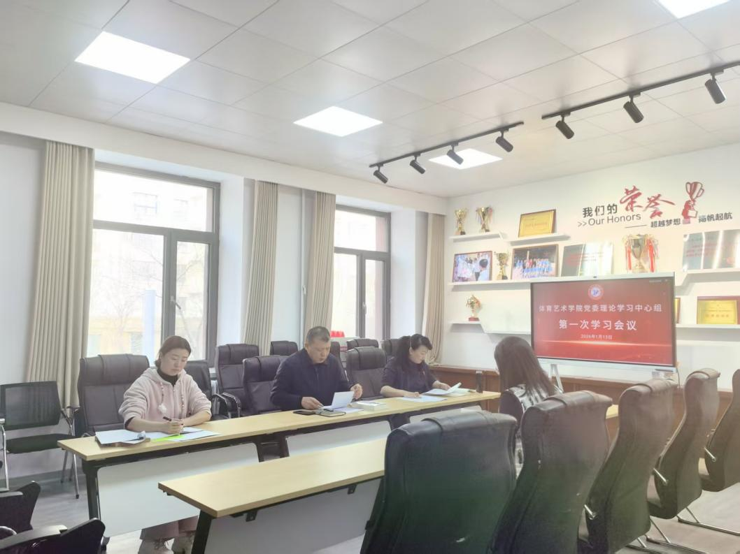 1月13日,体育艺术学院党委理论学习中心组在学院会议室召开2026年度第一次集体学习会议,围绕习近平总书记近期系列重要讲话精神、党的创新理论以及全面从严治党重要部署开展专题学习和交流研讨,为开好学院领导班子2025年度民主生活会打牢思想基础。学院党委书记刘义峰主持会议。