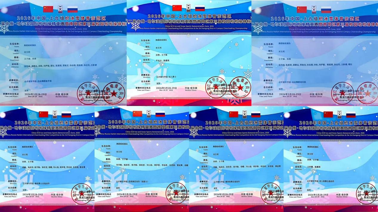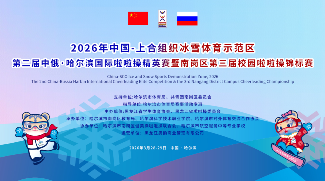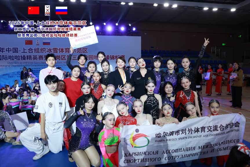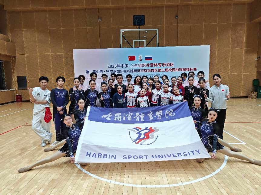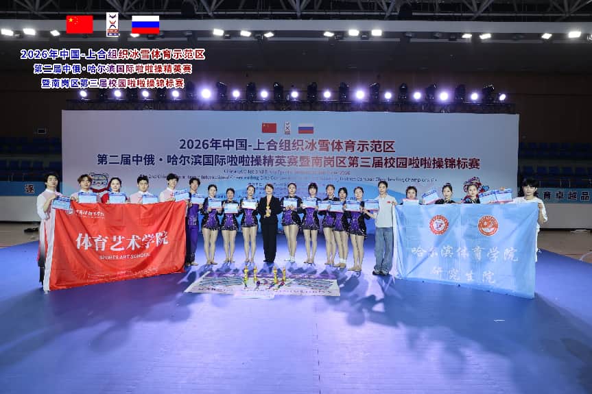 3月28日至29日,2026年中国-上合组织冰雪体育示范区第二届中俄·哈尔滨国际啦啦操精英赛暨南岗区第三届校园啦啦操锦标赛在哈尔滨市人民体育馆举行。共有来自国内5个城市的1400余名运动员,以及俄罗斯的近300名运动员参赛。哈尔滨体育学院体育艺术学院舞蹈啦啦操队以绝对实力斩获七个参赛项目的桂冠,用汗水与热情书写了属于他们的荣耀篇章!
