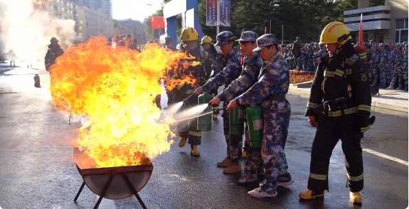 接下来,南岗消防救援大队队员向师生们详细讲解了灭火器的正确使用方法和步骤,并进行了消防器械操作演示及灭火器实际操作演练,学生代表在消防员的指导下亲自体验了水炮等消防器械,并进行了灭火器的实际操作。