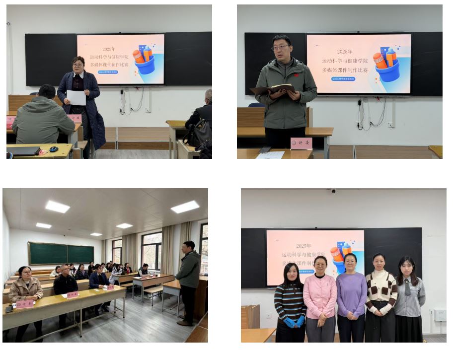 2025年11月26日下午,为深入推进信息技术与教育教学的深度融合,提升教师现代化教学水平,由运动科学与健康学院主办、运动心理学教研室承办的2025年度多媒体课件制作比赛(决赛)在1204教室成功举办。本次比赛旨在展示我院教师运用现代教育技术辅助教学的能力,激发教师的创新与进取精神,从而全面提高课堂教学质量,为学院的教育教学改革注入新动力。