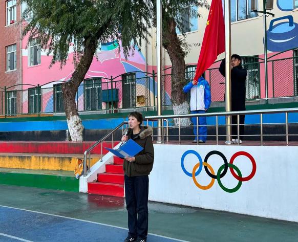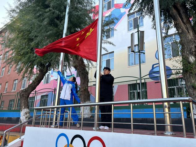 伴随着激昂雄壮的中华人民共和国国歌,鲜艳的五星红旗在晨光中缓缓升起,全体师生庄严肃立,目光追随着国旗,心中满是对祖国的崇敬与热爱。