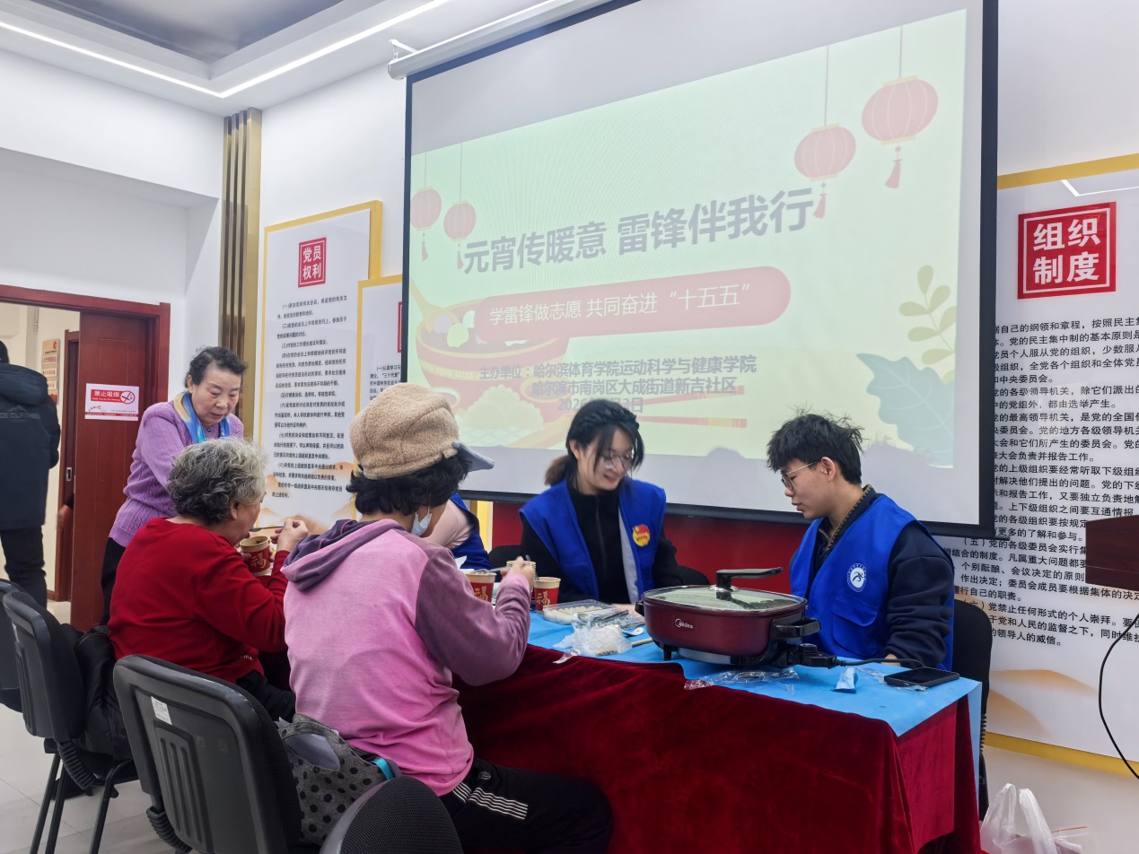为大力弘扬雷锋精神和志愿者服务理念,2026年3月3日,哈尔滨体育学院运动科学与健康学院党委组织师生党员、青年志愿者走进大成街道新吉社区,开展“元宵佳节传暖意 雷锋精神伴我行”主题党日志愿服务活动。本次活动以党建引领团建,充分发挥学院专业优势,聚焦社区老年人健康需求,推动学雷锋志愿服务精准化、专业化、常态化,为“十五五”开局贡献青春力量。