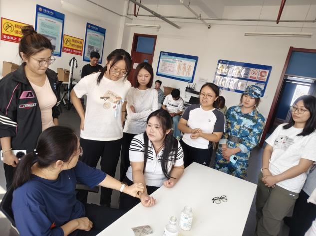 随后井老师先为同学们演示中医脉诊技艺。她逐一为同学们把脉,细致解析脉象与肺、脾胃、肾及脾气等脏腑功能的关联,“脉象是脏腑机能的‘晴雨表’,通过感知脉象的虚实、浮沉,能初步判断脏腑的运行状态,不少同学的脉象表现都与脏腑机能特点十分契合,这也体现了大家日常身体状态的缩影。”专业的讲解让同学们对脉诊有了直观认知。