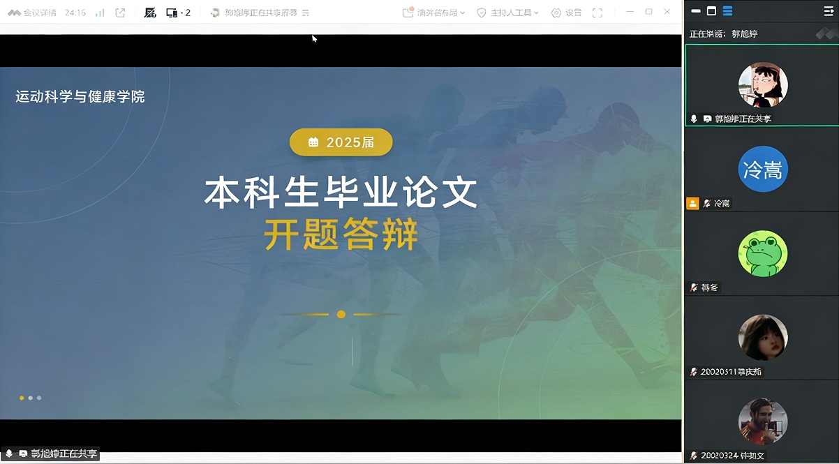 3月30日,运动心理学教研室组织开展了2025届本科生毕业论文开题答辩工作。本次答辩共涉及8名本科生,教研室6名教师参加并担任评审。答辩过程中,学生依次围绕选题背景、研究目的与意义、研究内容与方法、预期成果等方面进行陈述。评审教师从选题可行性、研究设计合理性、文献综述完整性等角度进行提问和点评,并提出针对性的修改建议。答辩结束后,教研室负责人对本次开题工作进行了简要总结,强调后续研究过程中要加强过程指导,确保论文质量。各位指导教师也将根据答辩中提出的意见建议,指导学生进一步完善开题报告,为后续论文写作打下良好基础。